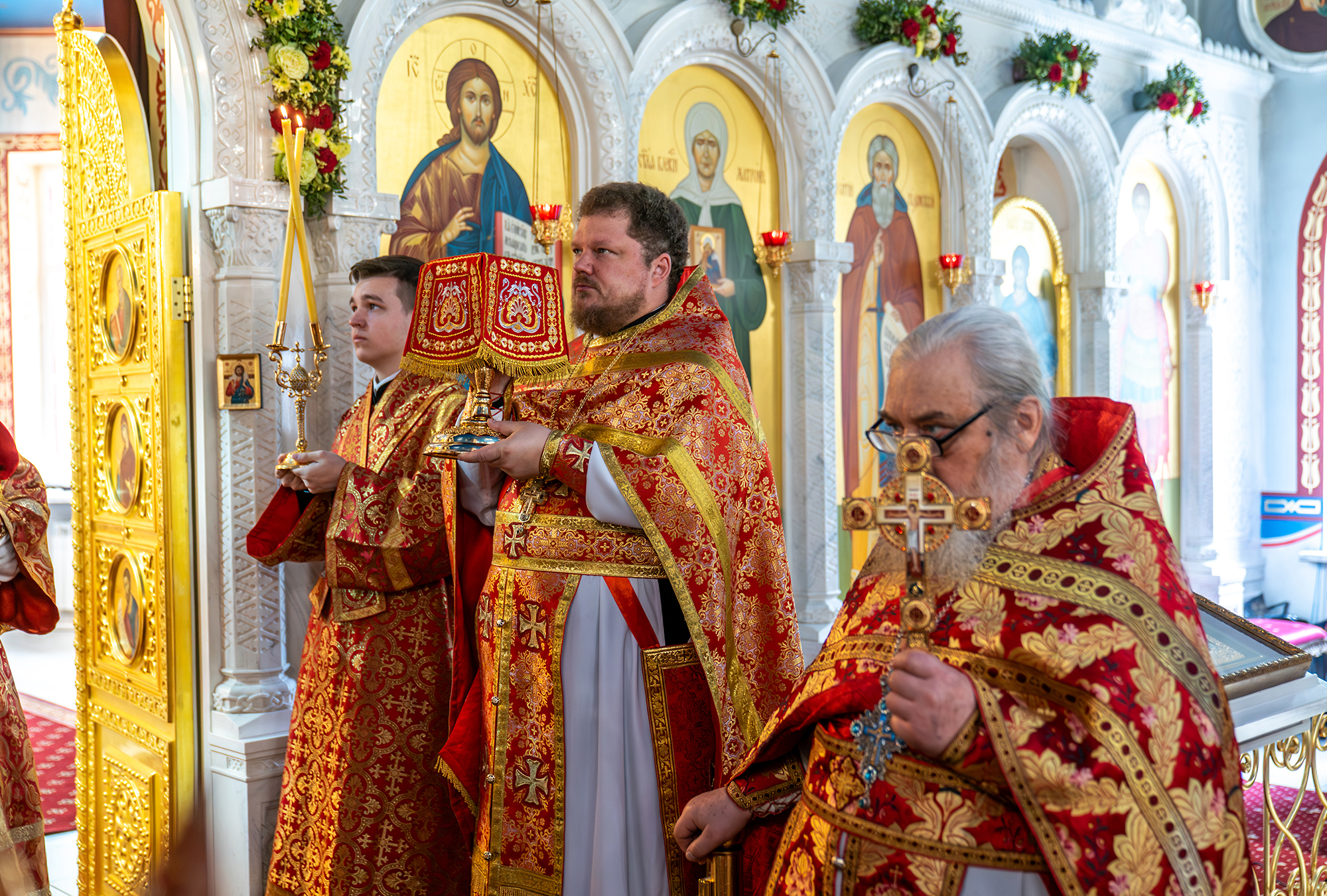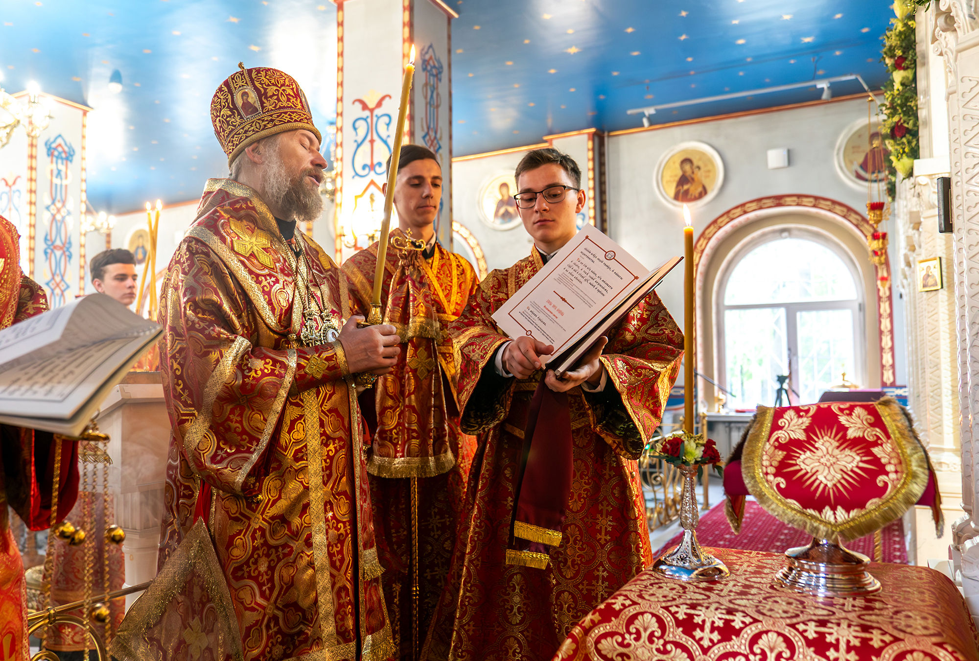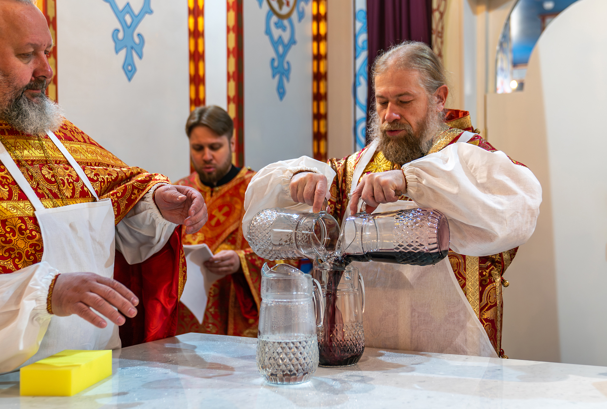 В совершении чина Великого освящения и последующем служении Божественной литургии Правящему Архиерею сослужили секретарь Воронежского епархиального управления протоиерей Андрей Скакалин, благочинный Христо-Рождественского церковного округа иерей Алексий Кузьминов, настоятель храма в честь иконы Пресвятой Богородицы «Утоли моя печали» мкр-на Подгорное г. Воронежа архимандрит Николай (Стенечкин), настоятель Димитриевского храма иерей Виталий Тарасов, настоятель храма в честь иконы Божией Матери «Взыскание погибших» совхоза Масловский иерей Андрей Стенечкин и клирик Димитриевского храма протоиерей Андрей Гладких.