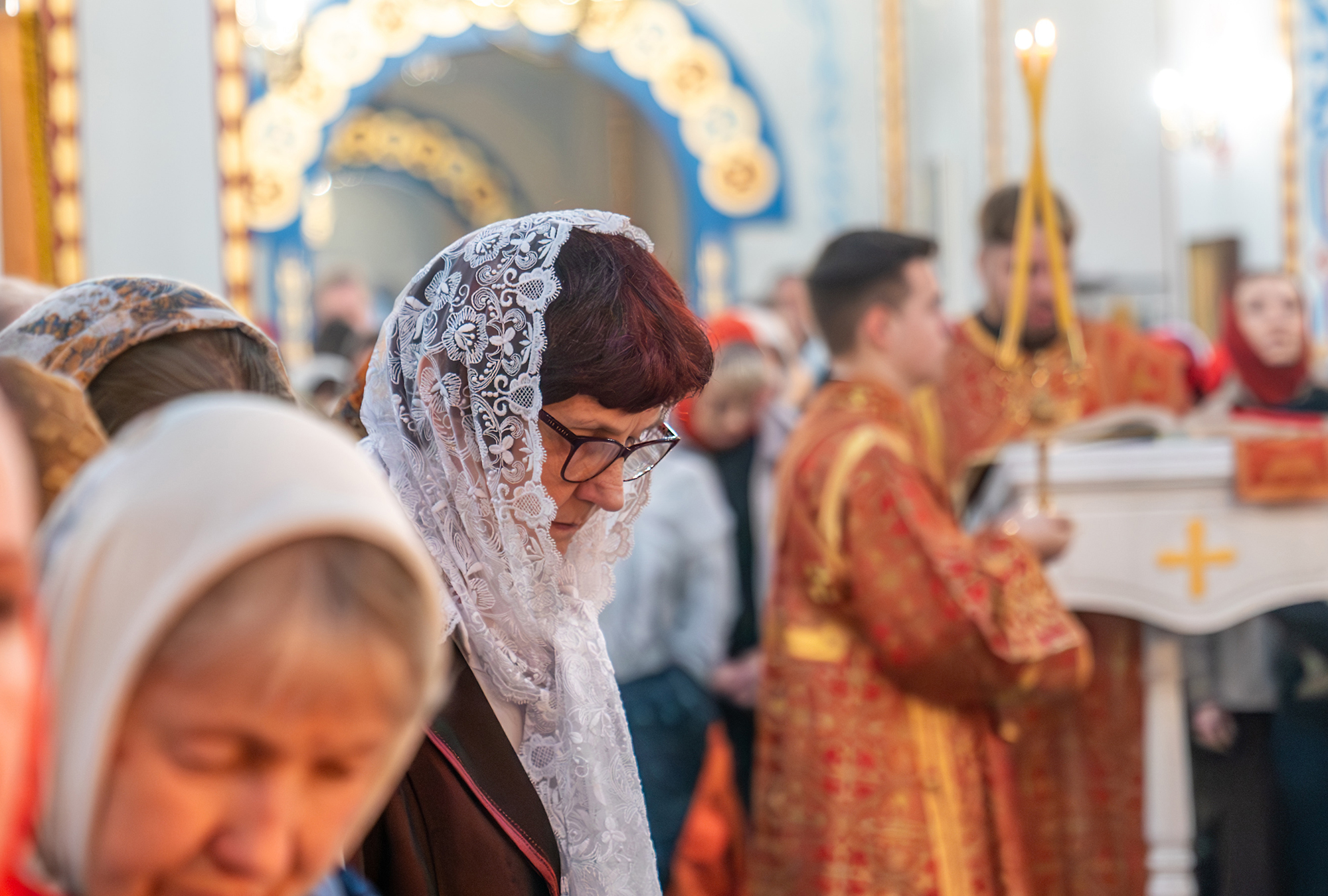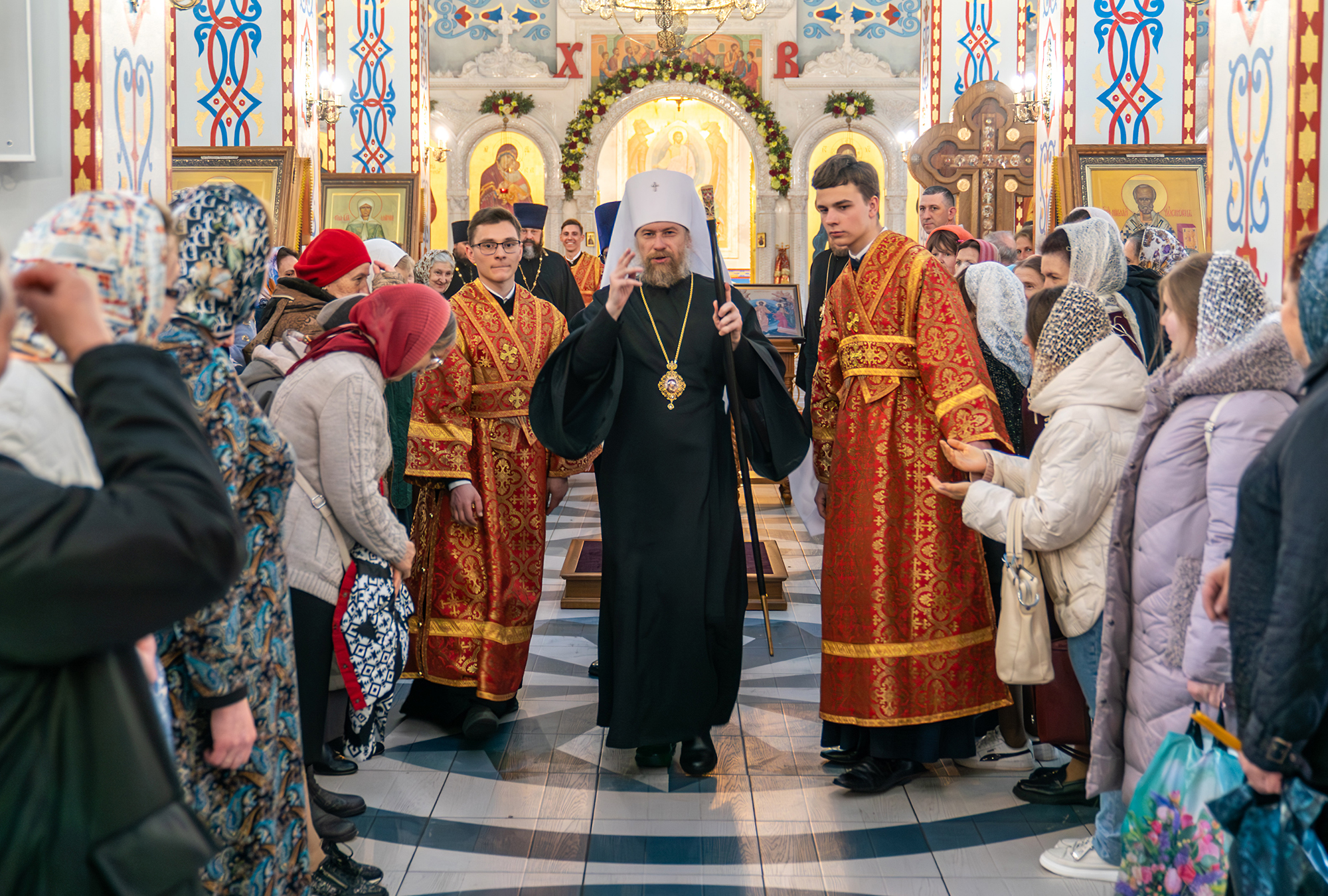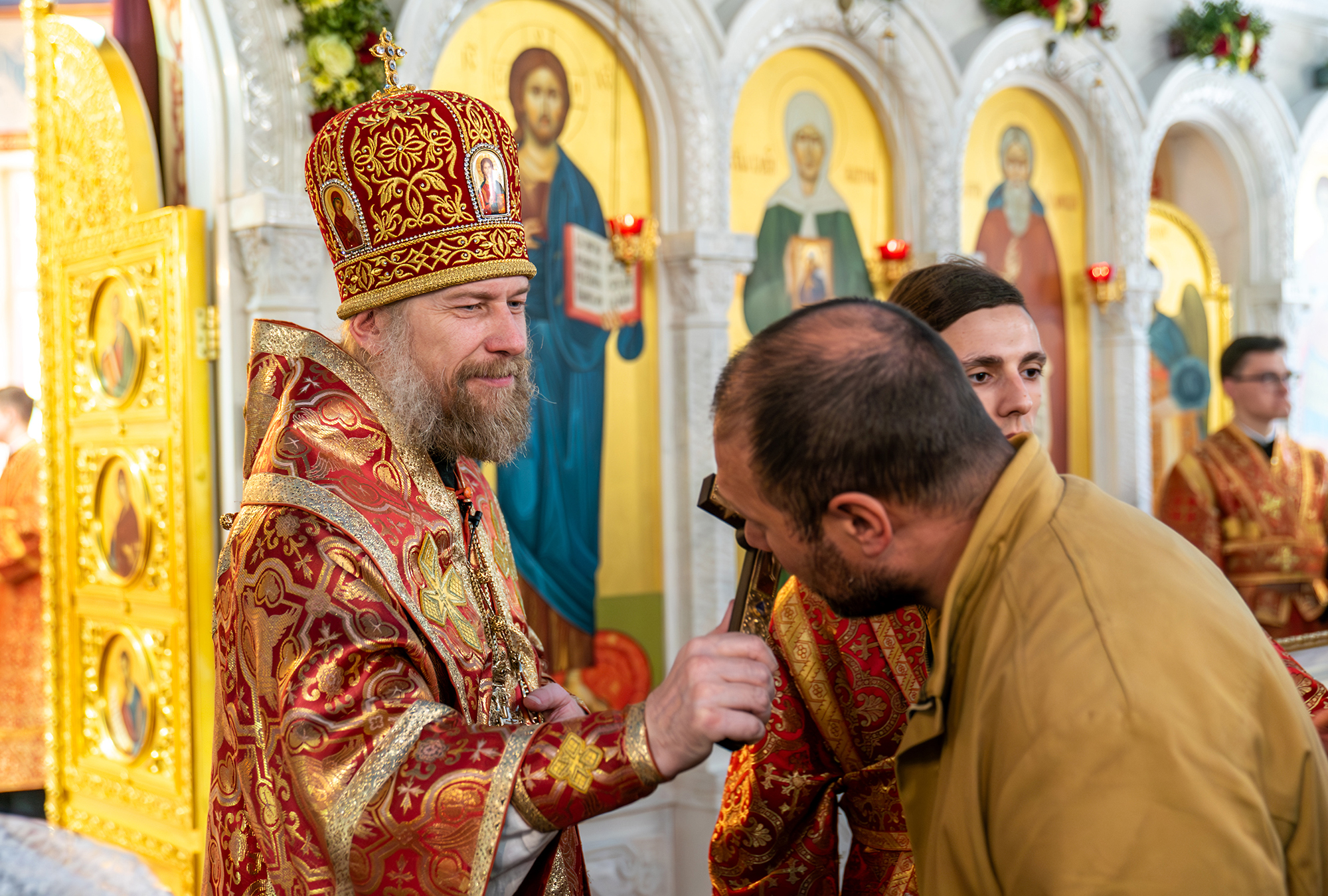 Во время чтения благодарственных молитв по Святом Причащении митрополит Леонтий преподал верующим для лобызания крест, а при выходе из храма благословил всех богомольцев.