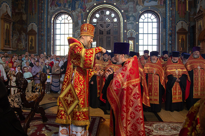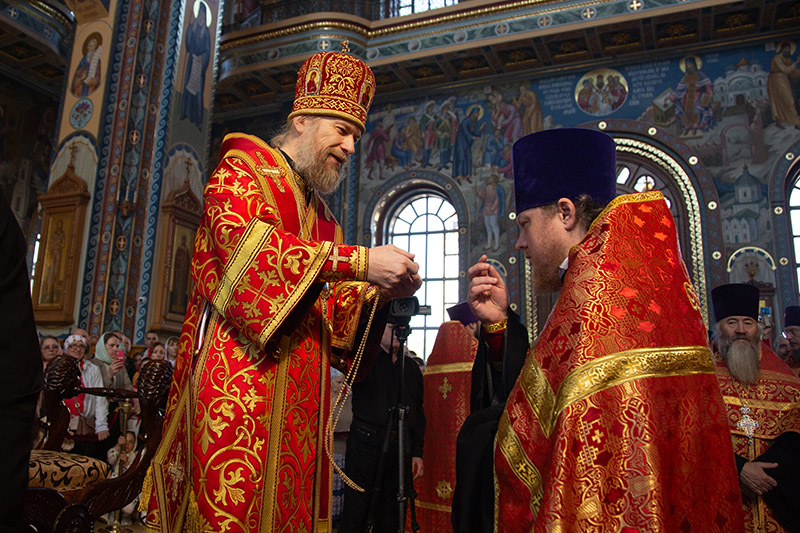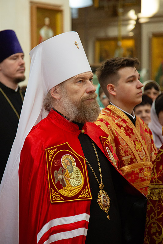 Во время чтения благодарственных молитв по Святом Причащении митрополит Леонтий преподал всем молящимся для лобызания крест.