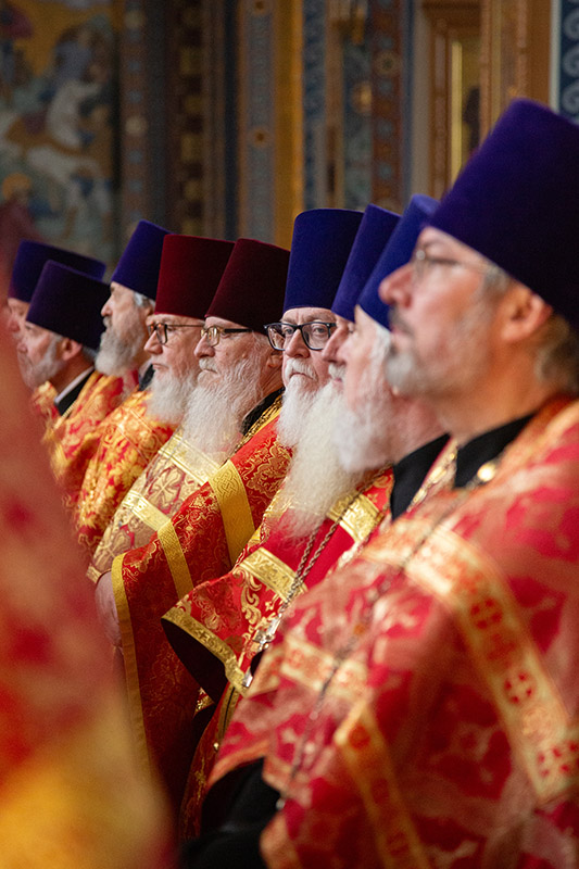 За Литургией читалось евангельское повествование о беседе Господа Иисуса Христа с Никодимом (Ин. 8 зач., III, 1-15). На сугубой ектении были произнесены прошения: «…о еже прияти молитвы нас недостойных рабов Твоих в сию годину испытания…» и прошение о «Преосвященных архипастырях, пастырях, монашествующих и мирянах земли Украинския, о единстве Церкви Христовы ревнующих, в заточении и гонениях сущих». Затем митрополит Леонтий вознес молитву о Святой Руси. По благословению Святейшего Патриарха Московского и всея Руси Кирилла эта молитва читается во всех храмах Русской Православной Церкви.