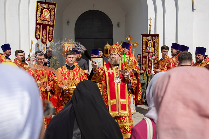После заамвонной молитвы был совершен пасхальный крестный ход. С пением пасхального канона духовенство и прихожане, во главе с Архипастырем, обошли вокруг храма. На четырех сторонах храма совершалось окропление верующих святой водой. У алтаря храма митрополит Леонтий возгласил евангельское зачало о Воскресении Христовом.