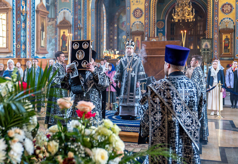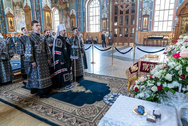 После совершения входа и пения Великого прокимна «Кто Бог велий, яко Бог наш», митрополит Леонтий возгласил евангельское зачало от евангелиста Иоанна Богослова о явлении Воскресшего Господа Иисуса Христа апостолам (Ин. 20:19-25). Евангелие читалось Архипастырем в Царских вратах, лицом к народу.