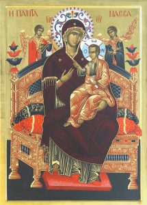 Икона Пресвятой Богородицы «Всецарица» размером 1,4х2 метра – копия афонского чудотворного образа (верхний храм)